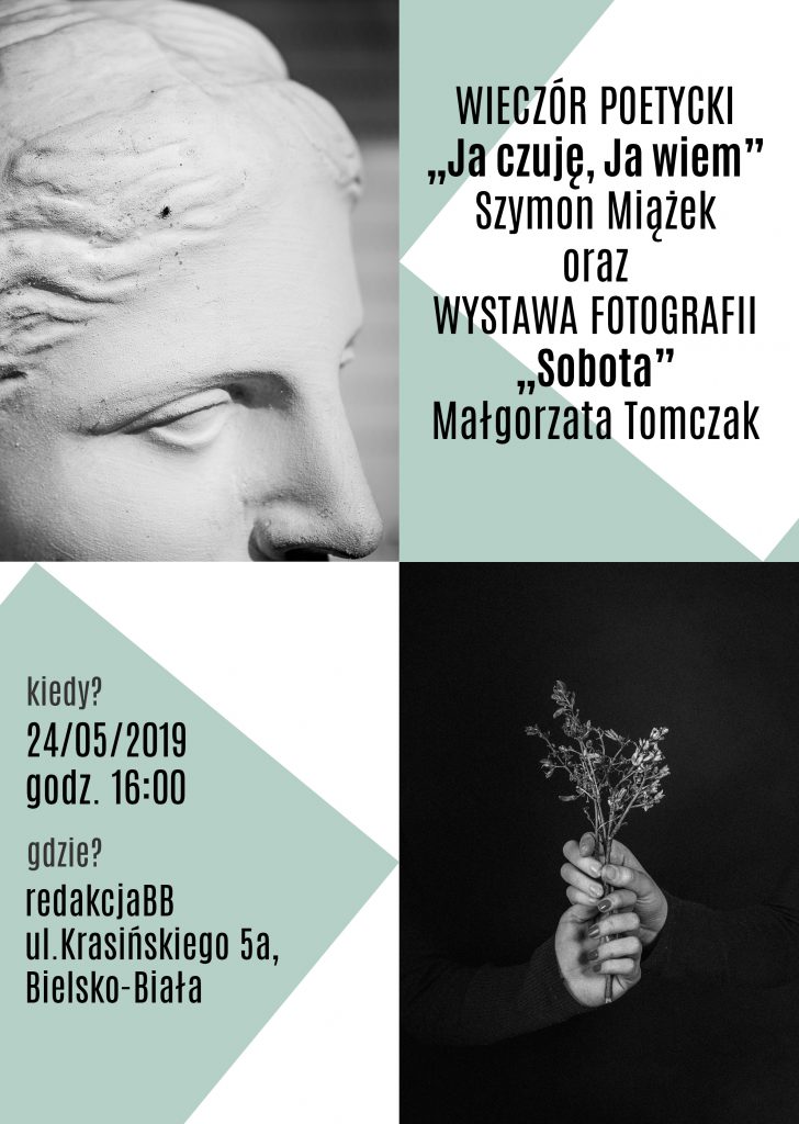 24 maja 2019 r. w siedzibie projektu redakcjaBB odbyło się wydarzenie: Wieczór poetycki „Ja czuję Ja wiem” połączony z wystawą fotografii „Sobota”.